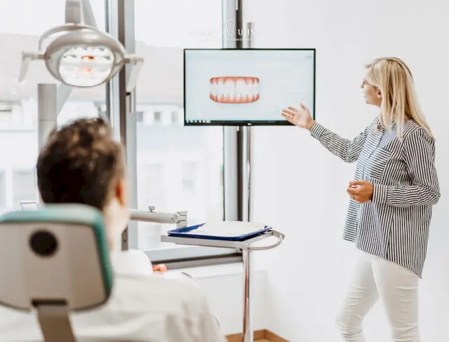 Eine Zahnkorrektur in unserer Praxis in Darmstadt bietet viele Vorteile. Zu den ästhetischen Vorteilen für den Patienten zählen ein harmonisches Erscheinungsbild und ein gesteigertes Selbstbewusstsein. Zu den medizinischen Vorteilen gehören ein geringerer Abrieb der Zähne durch eine korrekte Bisslage, eine optimierte Kaufunktion, eine Entlastung des Kiefergelenks und der Muskulatur sowie weniger Zahn- und Kopfschmerzen.